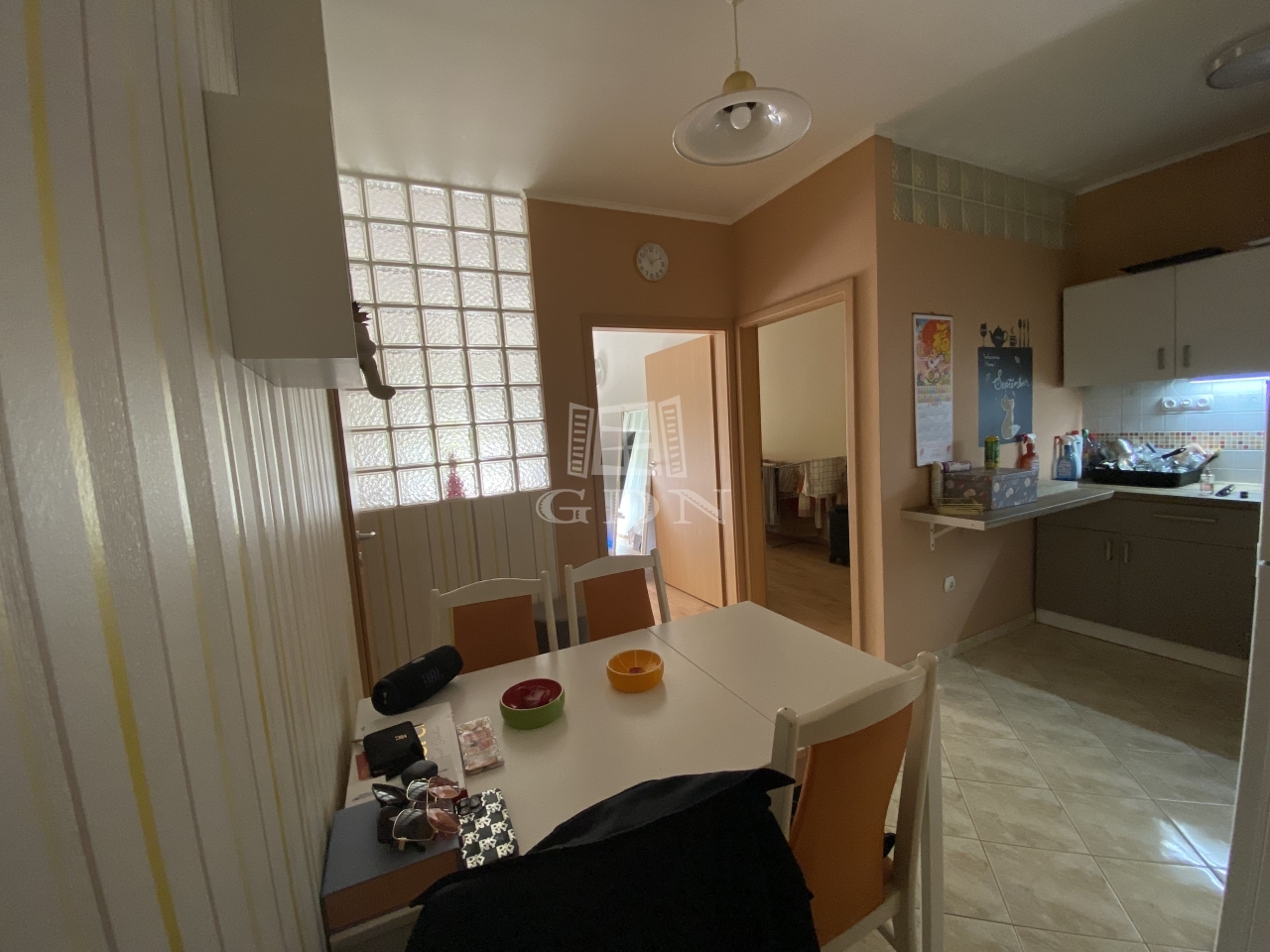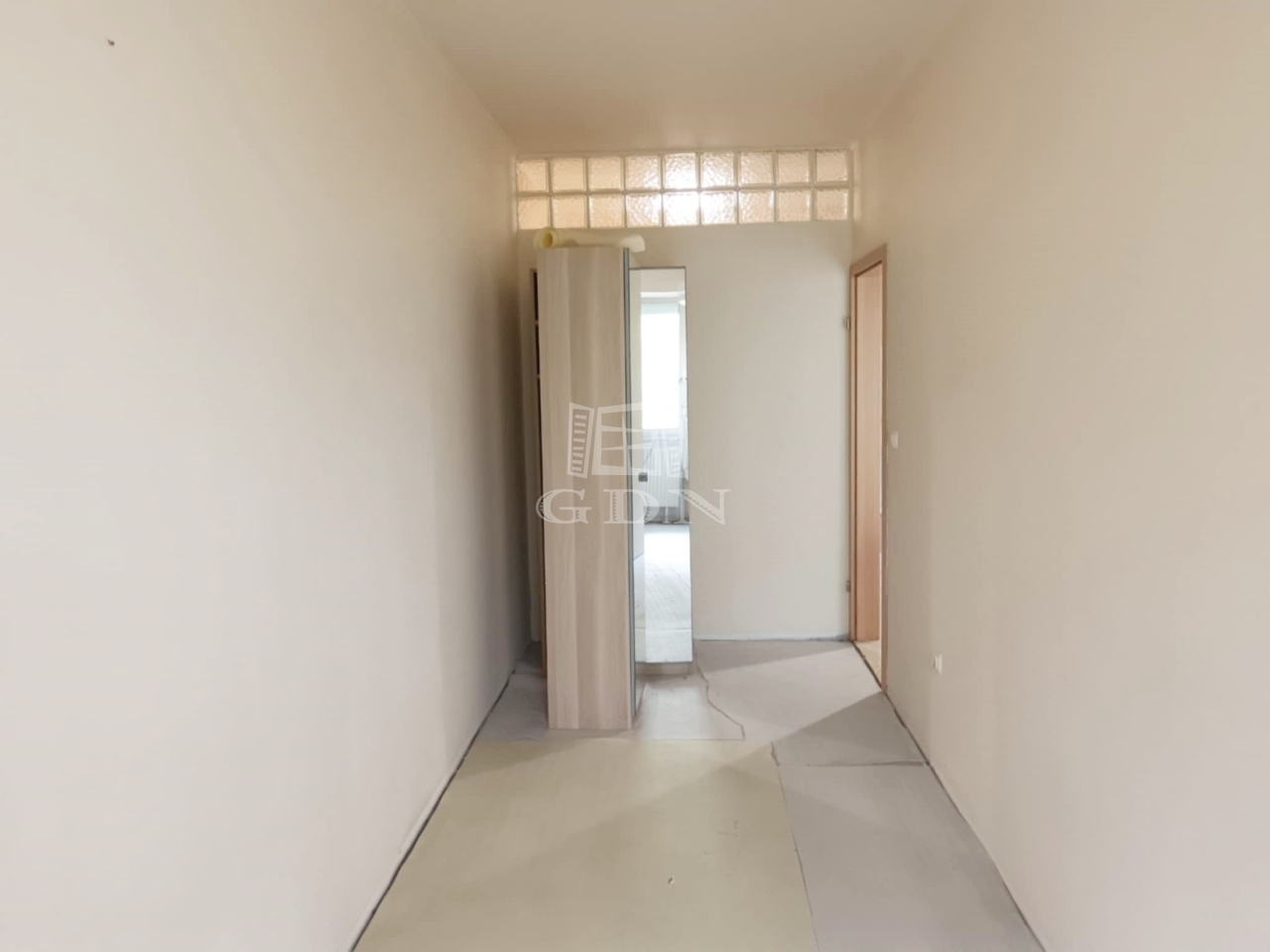 Társasház 2. emeletén található. Ablakai és az erkély is DNY-ra néznek, ezáltal késő délutánig besüti a Nap. A nappali és a háló üvegtégla falrészeknek köszönhetően az étkező és a konyha is kellően világos. A bejárati ajtón belépve a közlekedőn keresztül jutunk a lakásba, itt található egy faltól falig beépített szekrény is, amely mindent elnyel. Szemben található a kádas fürdőszoba, mellette pedig a konyha, mely egy teret alkot az étkezővel.