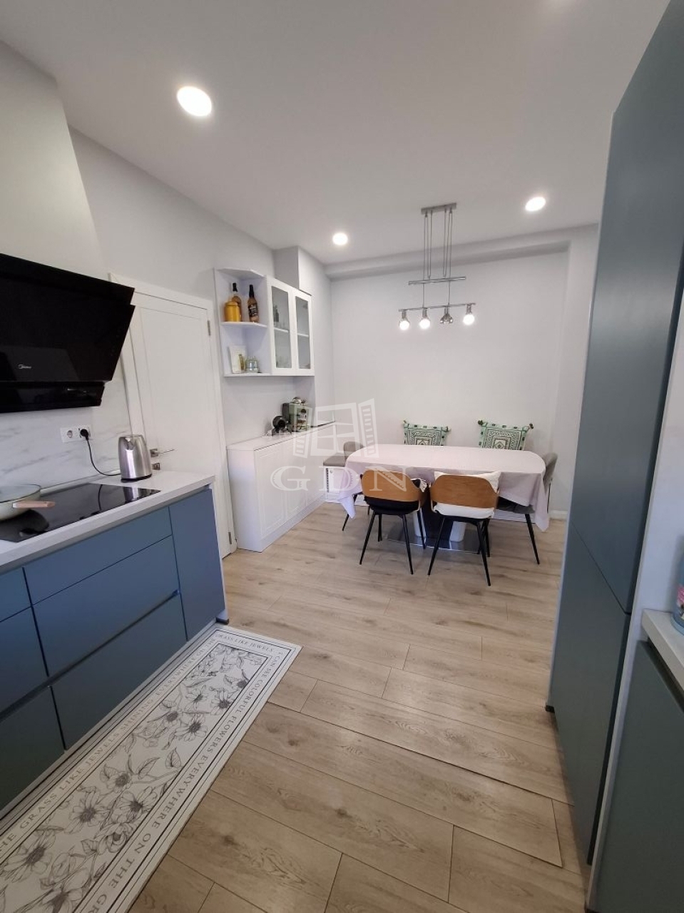A lakás elrendezése rendkívül praktikus: tágas, világos terek, modern kialakítás.