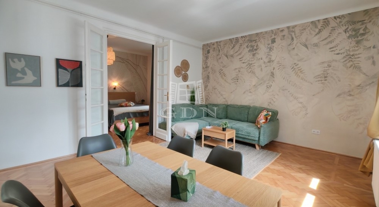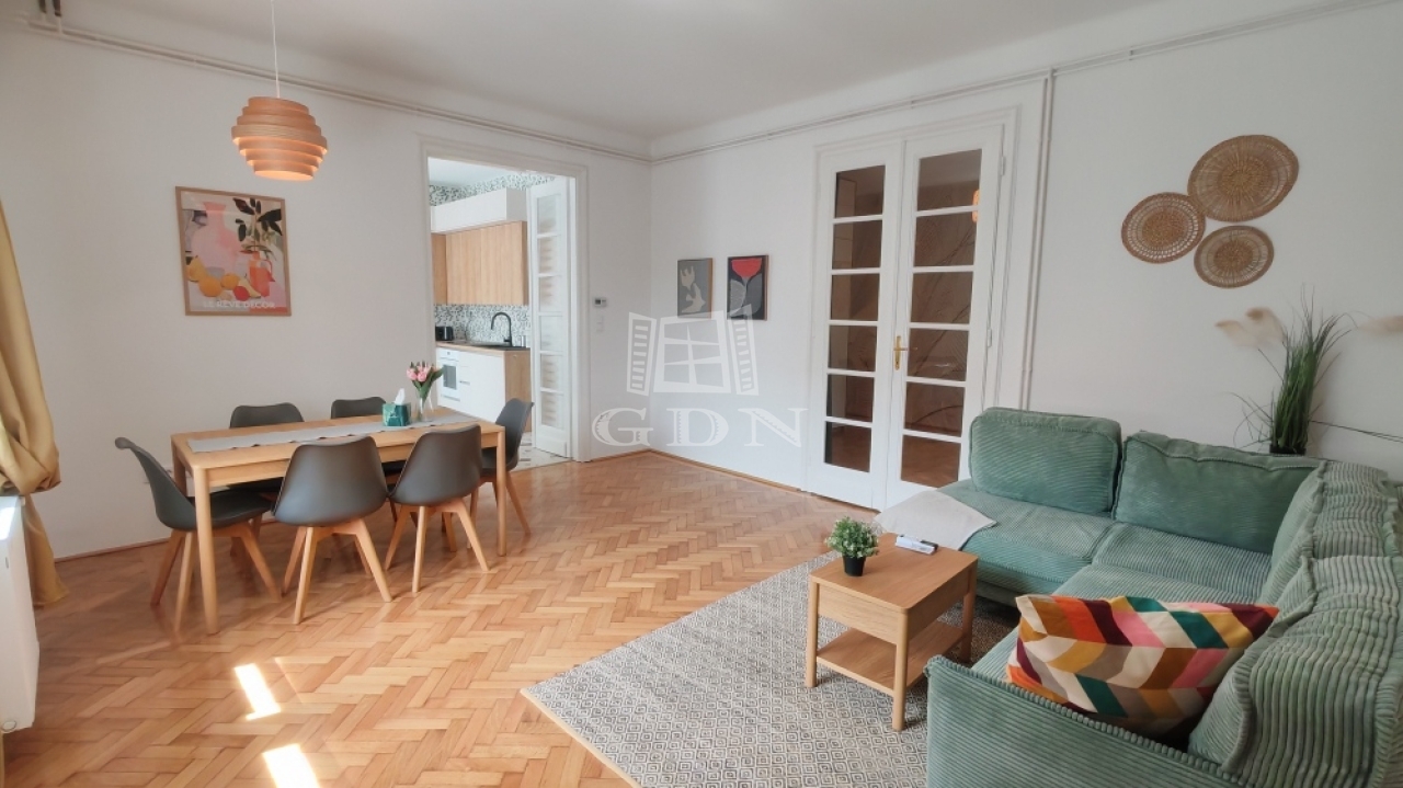 A 91 m²-es, téglaépítésű ingatlan az épület 5. emeletén található, kiváló elosztásának köszönhetően pedig rendkívül kényelmes és világos életteret kínál. A két tágas szoba mellett a lakás különleges hangulatát a modern berendezés, az újszerű állapot és a kertre néző nyugodt kilátás teszi teljessé.