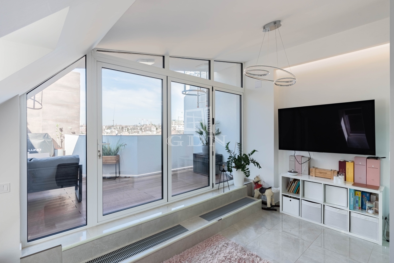 For sale in one of the most sought-after parts of District XII, on Csörsz Street, just steps from MOM Park, a premium-quality, duplex apartment with a terrace and panoramic views of the Buda Castle District.