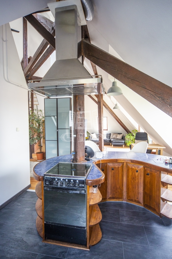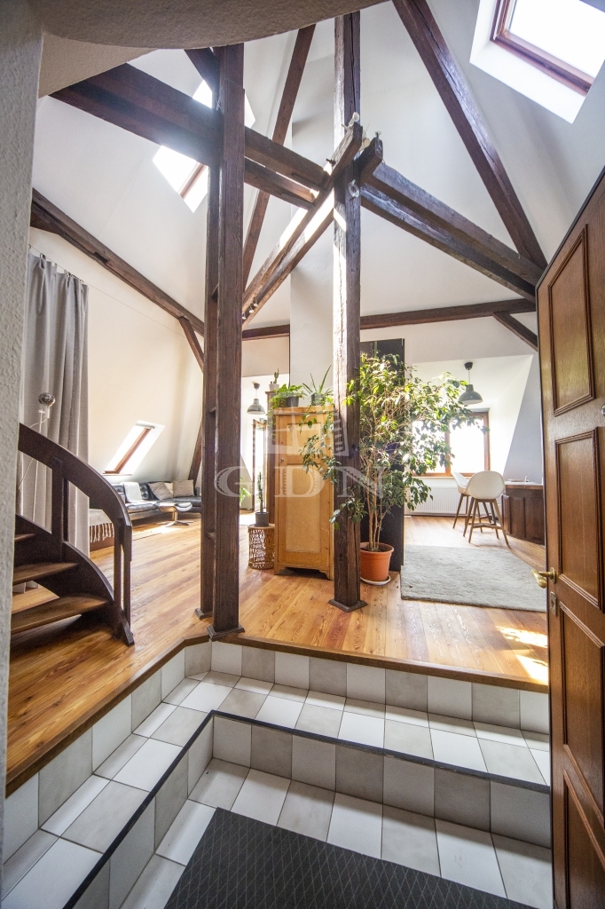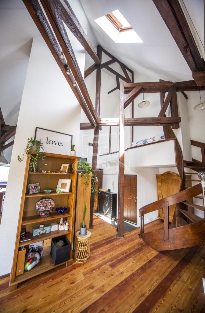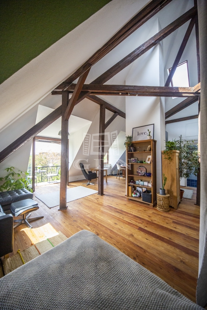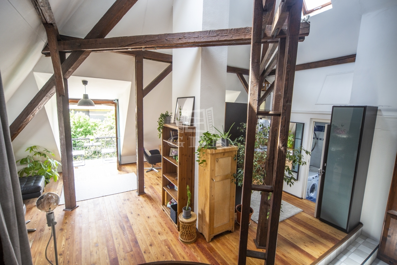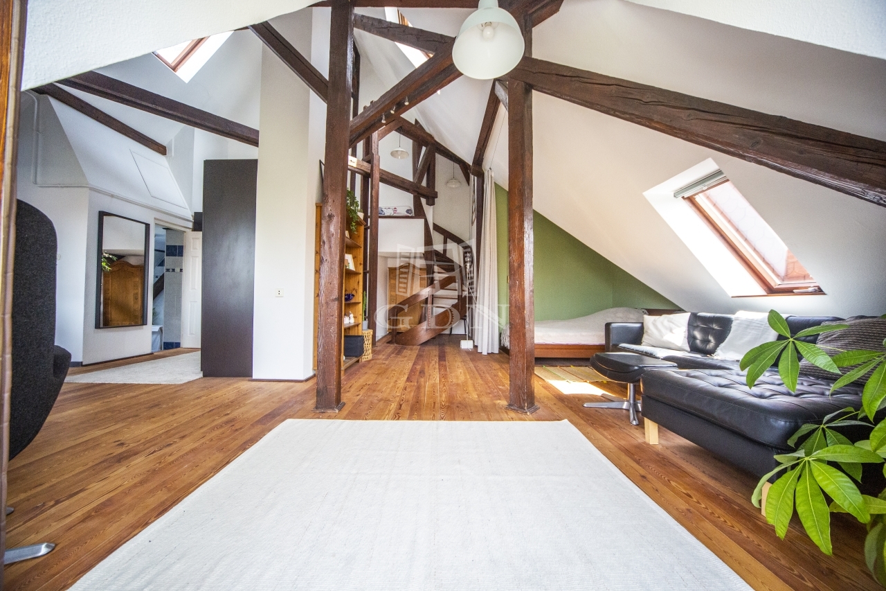 Az újonnan beépített klímával felszerelt lakás belső átriumos kialakítása, valamint a terek elrendezése egyértelműen a klasszikus művész lakás hangulatát árasztja.