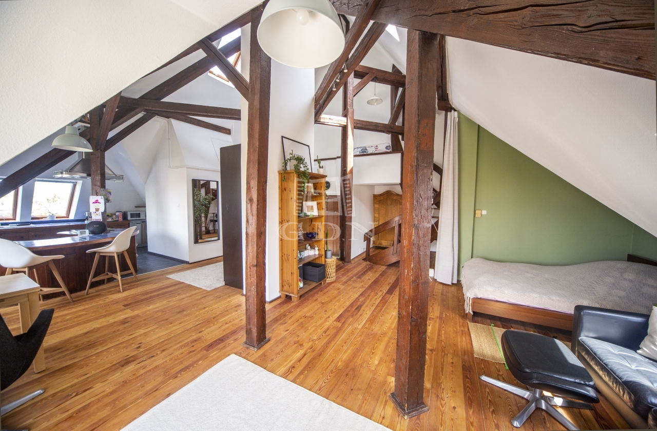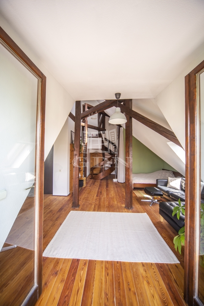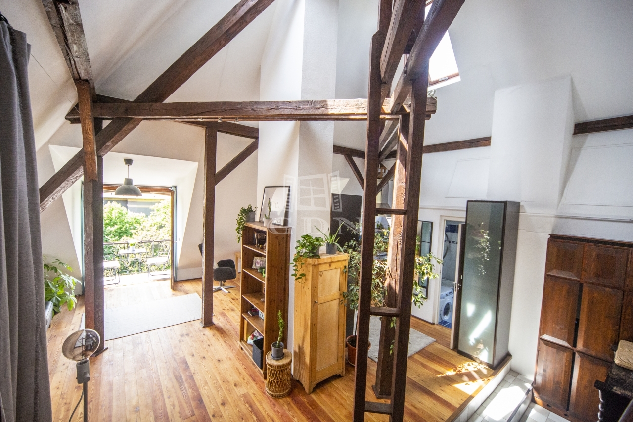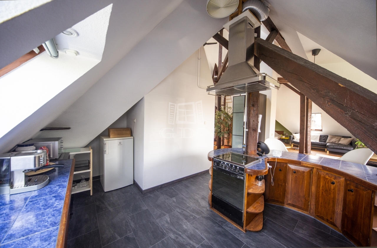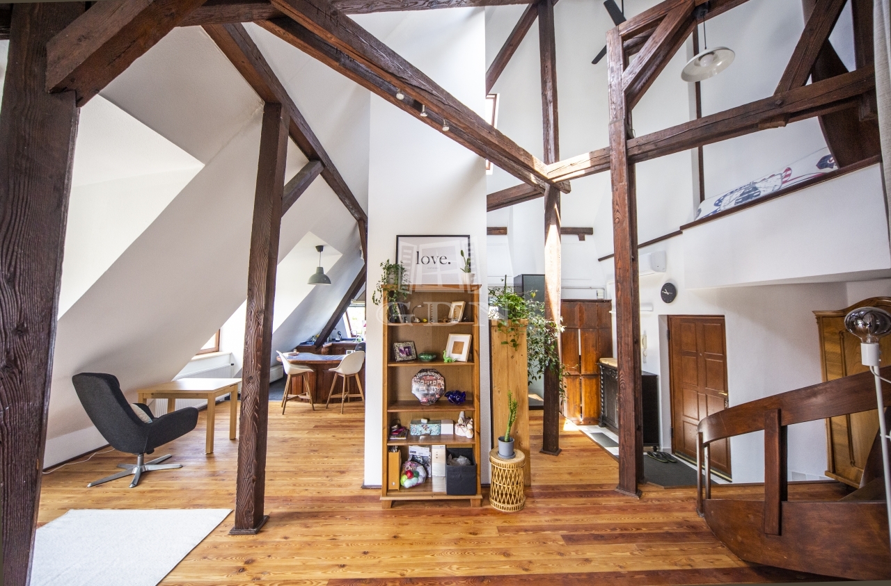 Az újonnan beépített klímával felszerelt lakás belső átriumos kialakítása, valamint a terek elrendezése egyértelműen a klasszikus művész lakás hangulatát árasztja.