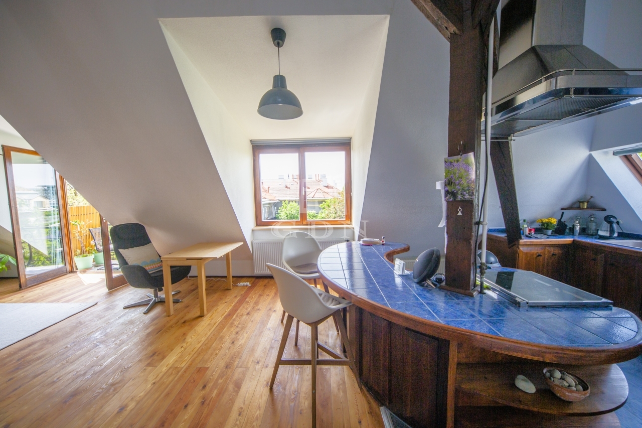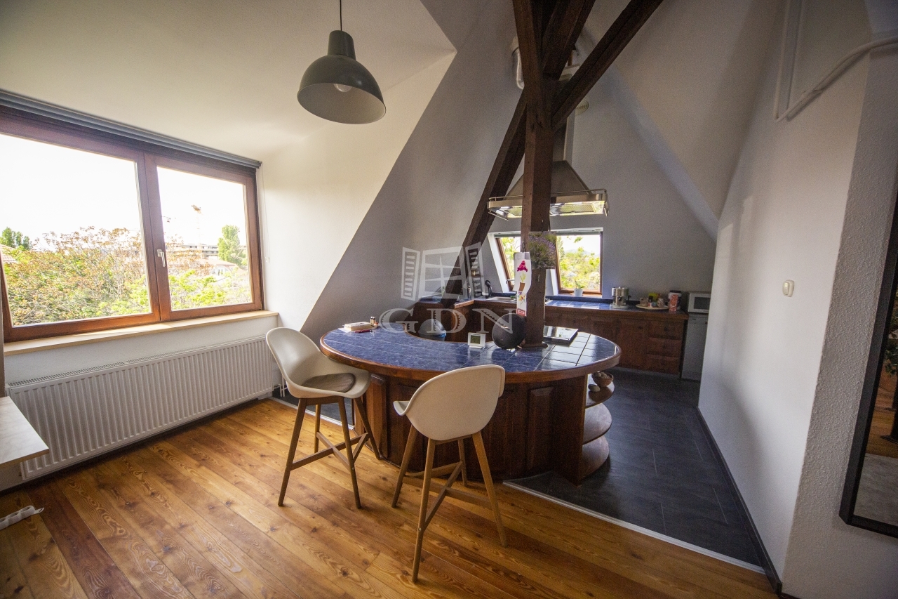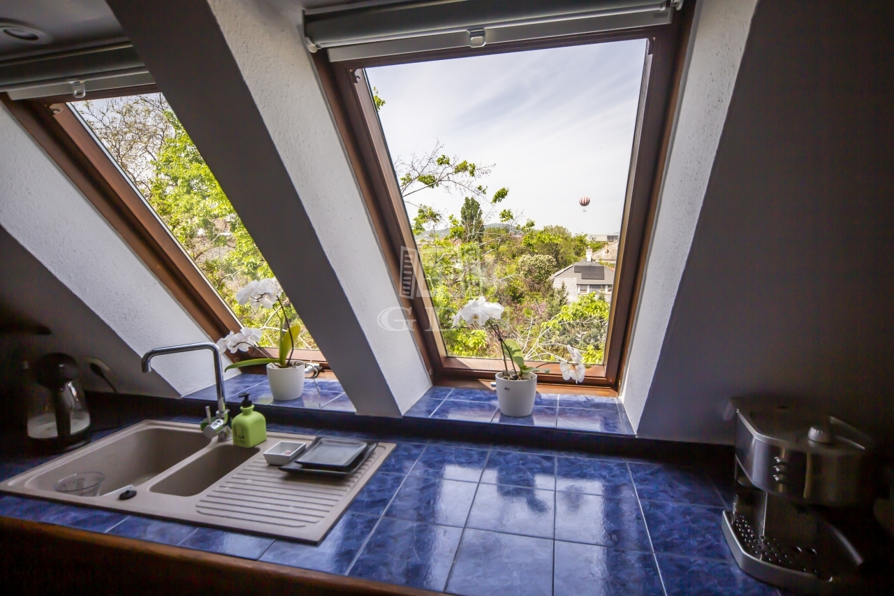 A bérbeadásra kínált bruttó 81 négyzetméteres ingatlan az impozáns Ilka utcában, egy dekoratív nagypolgári stílusú épületben helyezkedik el. A lakásban lakó a tágas erkélyről (Budai hegység, számos ismert épület) és a tető téri ablakokból egyaránt a négy égtáj bármelyike felé kivételes városi panorámában gyönyörködhet.