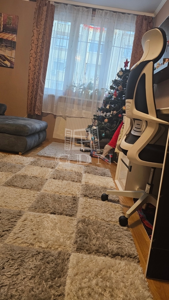 A lakásból nyíló utcai kilátás kellemes tágasságot kölcsönöz a helyiségnek.