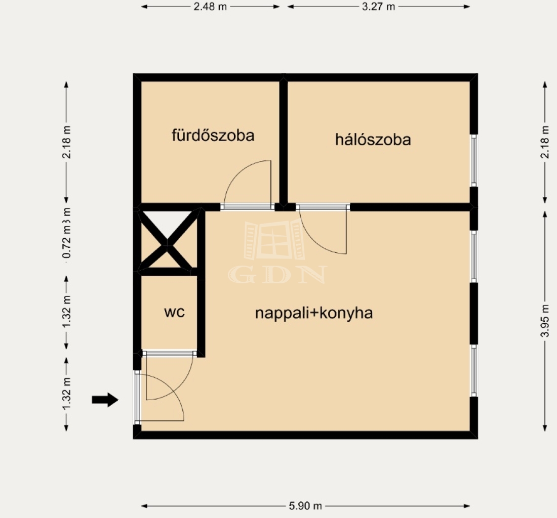 | 33 m2Alapterület | 1 + 1 Szoba |