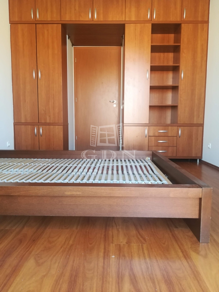 A lakás bútorozott és gépesített (mosógép, mosogatógép, sütő, főzőlap, hűtő, TV, klímaberendezés mindkét szobában).