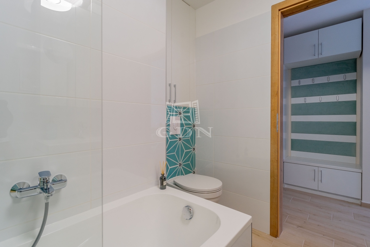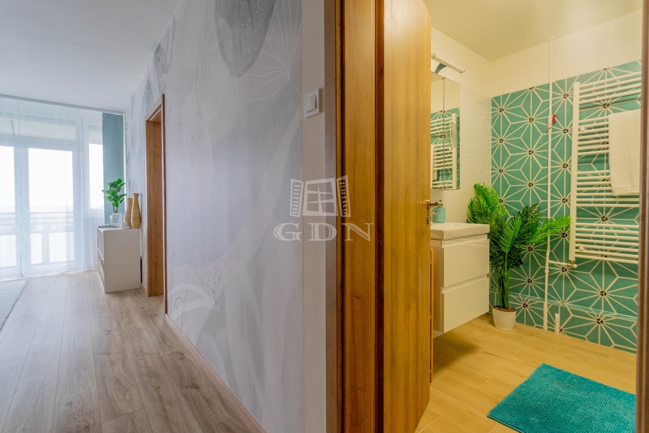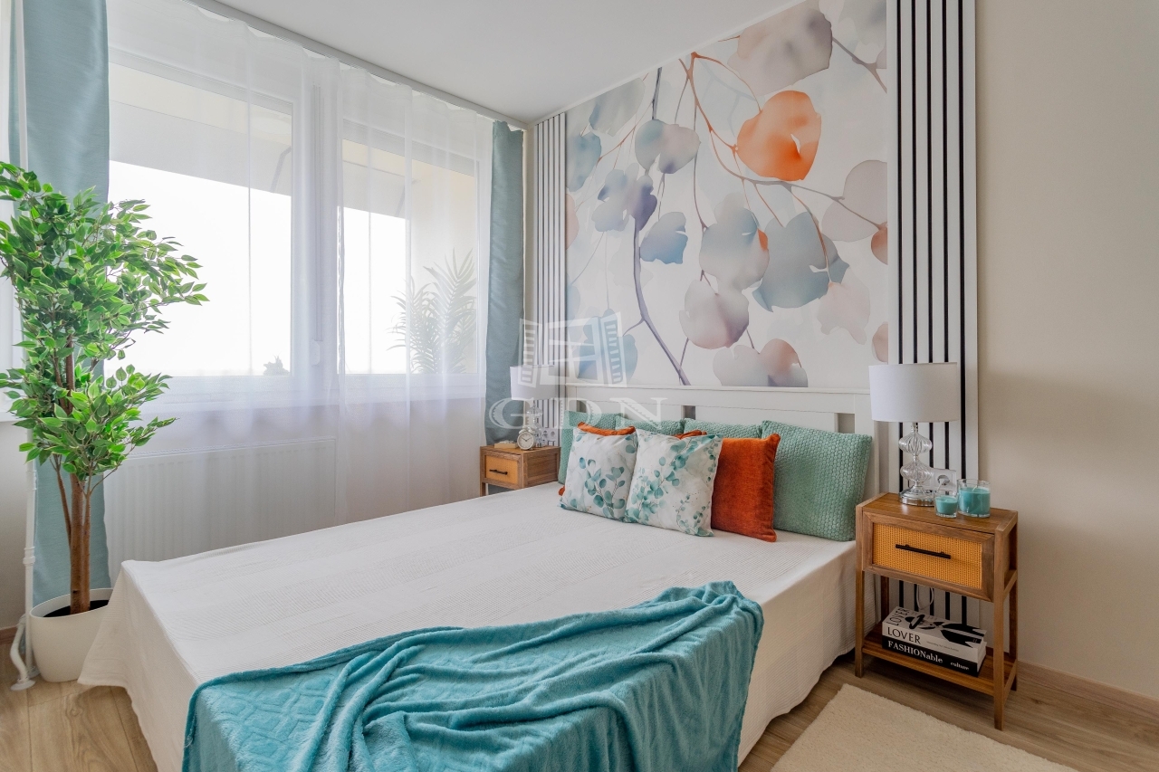 Az átgondolt alaprajzi módosításnak köszönhetően a terek jól kihasználtak és élhetőek. A keleti tájolásnak és a sok ablaknak köszönhetően a lakás rendkívül világos, ugyanakkor csendes. Az erkélyről szép, nyitott panoráma tárul elénk.