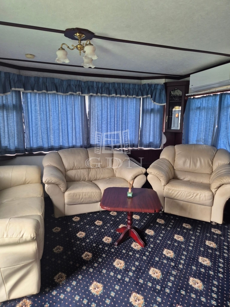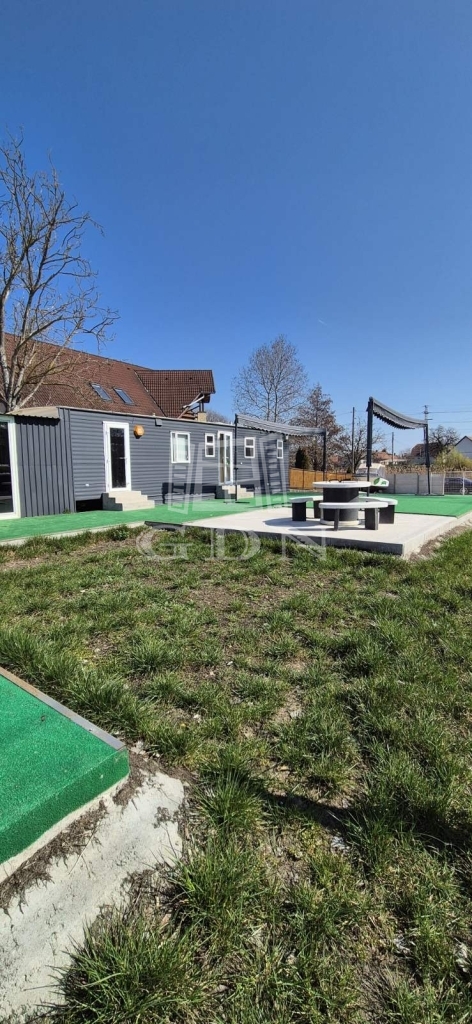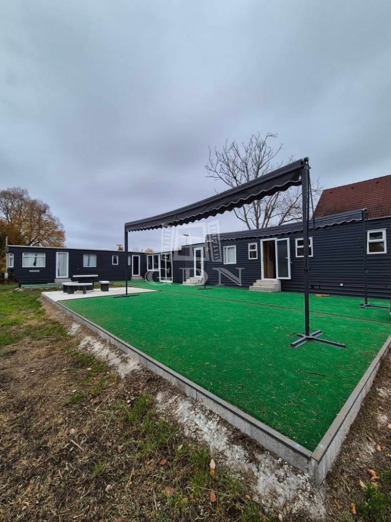A telken két mobilházból álló, összesen 100 m² lakóterületű épületegyüttes található, amely télen-nyáron lakható, teljes közművel ellátott (víz, villany), valamint hűtő-fűtő klímával felszerelt.