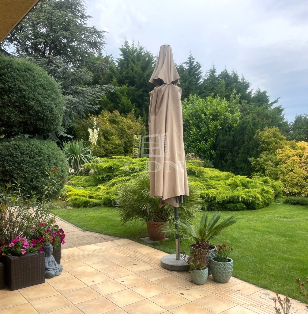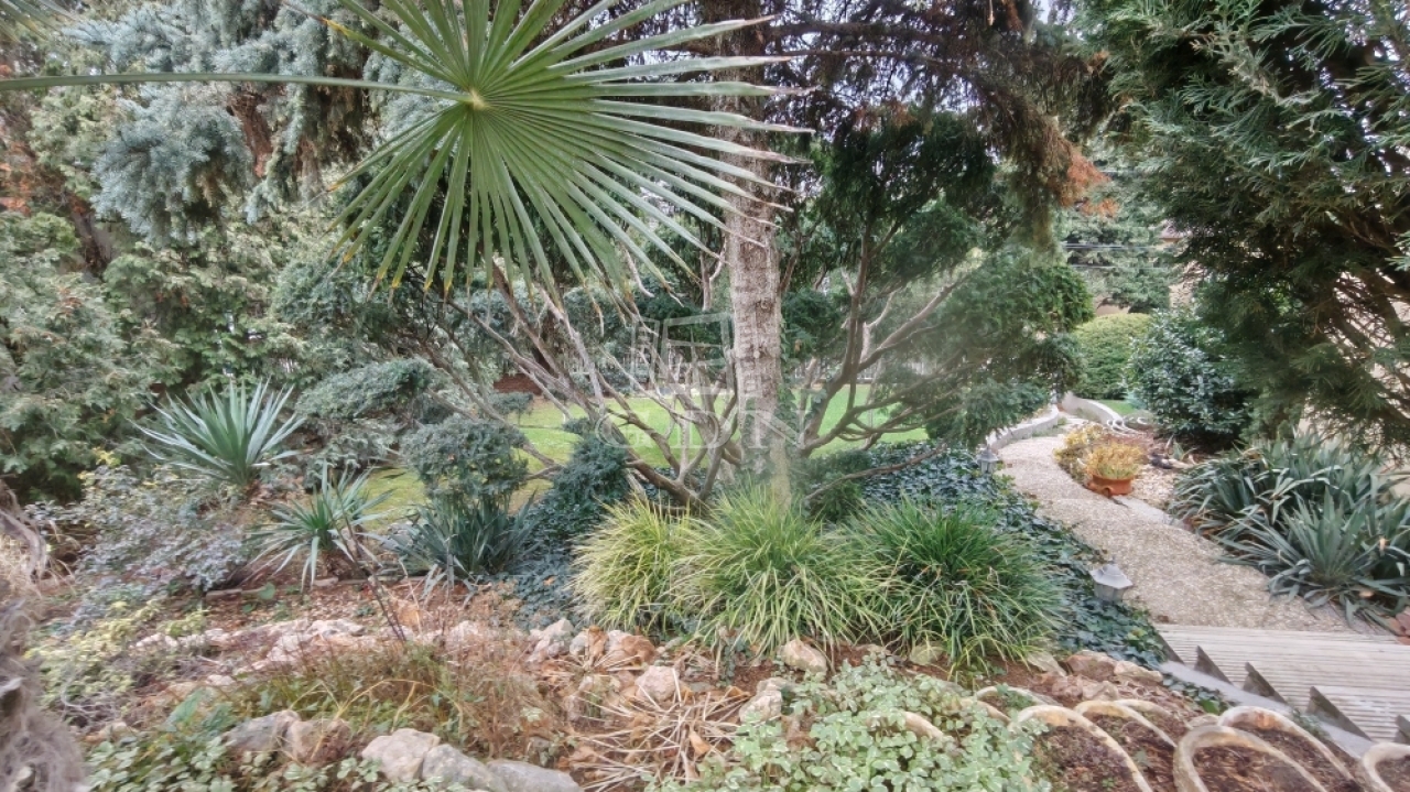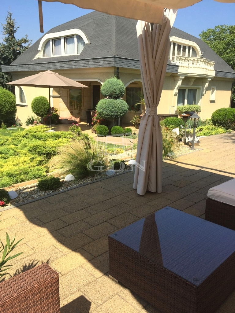 A kert parkosított, automata öntözőrendszerrel ellátott, medencével kiegészített. Az évek során kialakított, gondosan válogatott növényállomány értéke szinte felbecsülhetetlen, igazi, intim kertvárosi hangulatot biztosít.