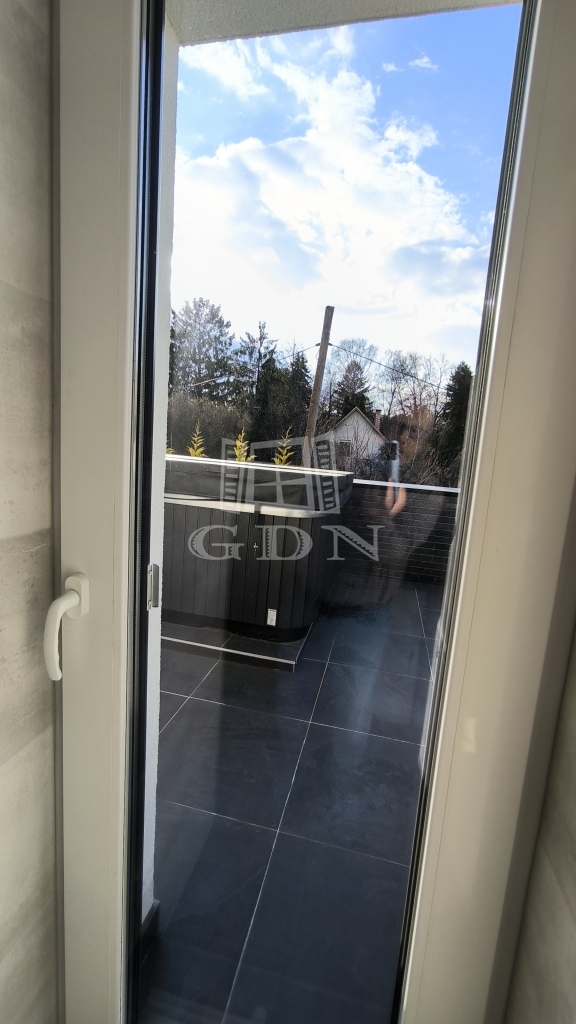 A földszinten az amerikai konyhás nappali mellett van még egy háló és egy fürdőszoba is, a lépcső alatt kis tároló. A nappaliból kilépve érünk a 34 négyzetméteres teraszra, az intimitást biztosító, karbantartott kertbe. Az emeleten 3 háló ( 2 teraszos), egy fürdő és a szauna helység található zuhanyzóval.