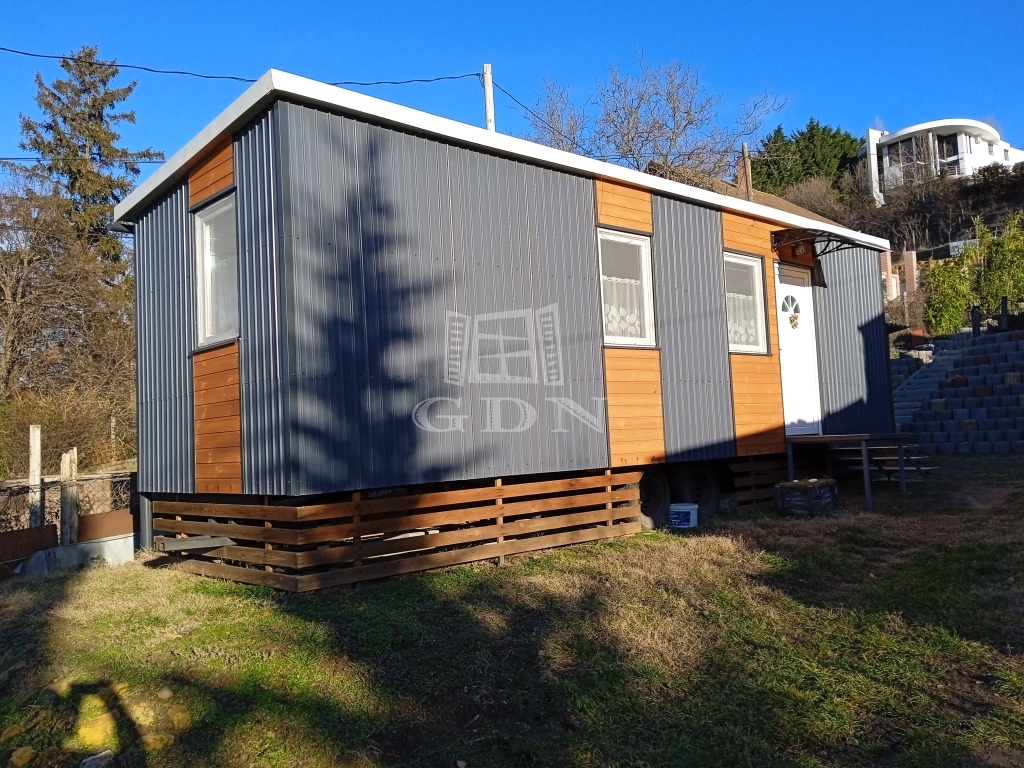 - A telek alsó részén (utcafront) egy kerekeken guruló mobil ház van.