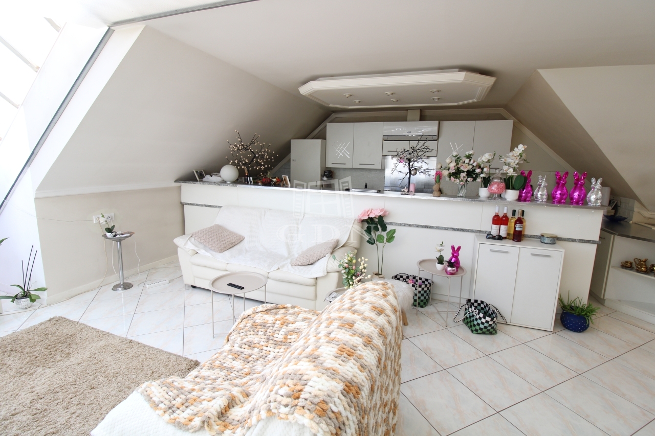 Felső szintre kényelmes fokkiosztású stabil lépcsőn juthatunk fel ahol is kettő félszoba, tágas világos fürdőszoba, illemhely és egy hatalmas amerikai konyhás nappali kapott helyet