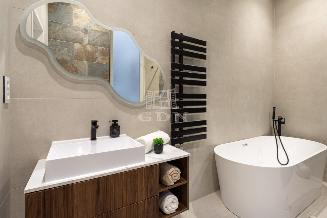 A felújítás során magas színvonalú anyagok kerültek felhasználásra, amely modern és elegáns megjelenést biztosít.