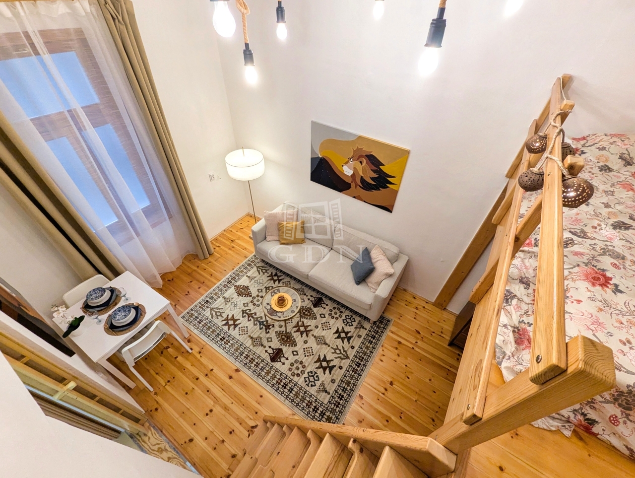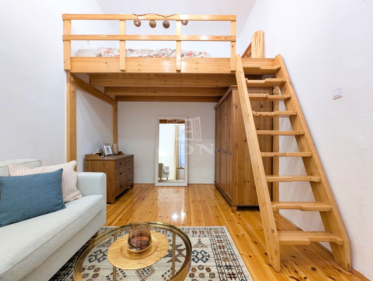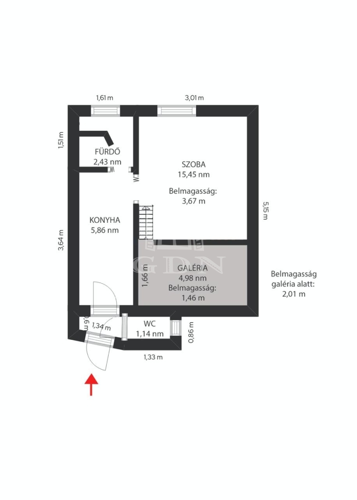 • Helyiségek: Előszoba-konyha, külön helyiségben található WC, zuhanyzós fürdőszoba, valamint egy tágas, világos szoba galériával.