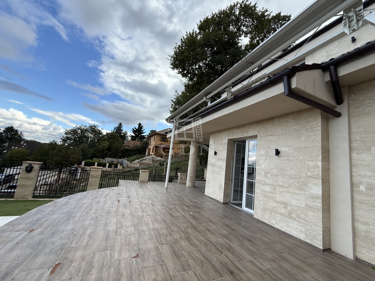 A ház minden részlete a kényelmet és az eleganciát szolgálja. A tágas nappali és a teraszról nyíló panoráma ideális helyszínt biztosít családi és baráti összejövetelekhez.