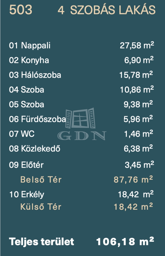 A 6 emeletes társasház 5. emeletén található ez a piacon hiánypótló három hálószobás összkomfortos, városi panorámás ingatlan. A központi tér a közel 35m2-es konyha -nappali melynek nyugati frontján egy összefüggő üvegfelület, nagy toló ajtókkal határolja a 18m2-es sarok terasztól mely tavasztól, őszig a nappali kiterjesztése. A dél-nyugati benapozásnak köszönhetően napfürdőzhetnek a leendő lakók, az alapterület üvegfelület aránynak köszönhetően pedig télen nyáron nagyon világos, mint egy igazi műterem lakás. Az átgondolt tervezésnek köszönhetően nagyszerűen elkülönülnek a hálószobák nappalitól.