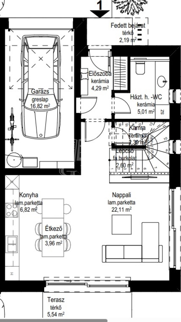Parkolás: fedett, nagy méretű autó számára is alkalmas garázs