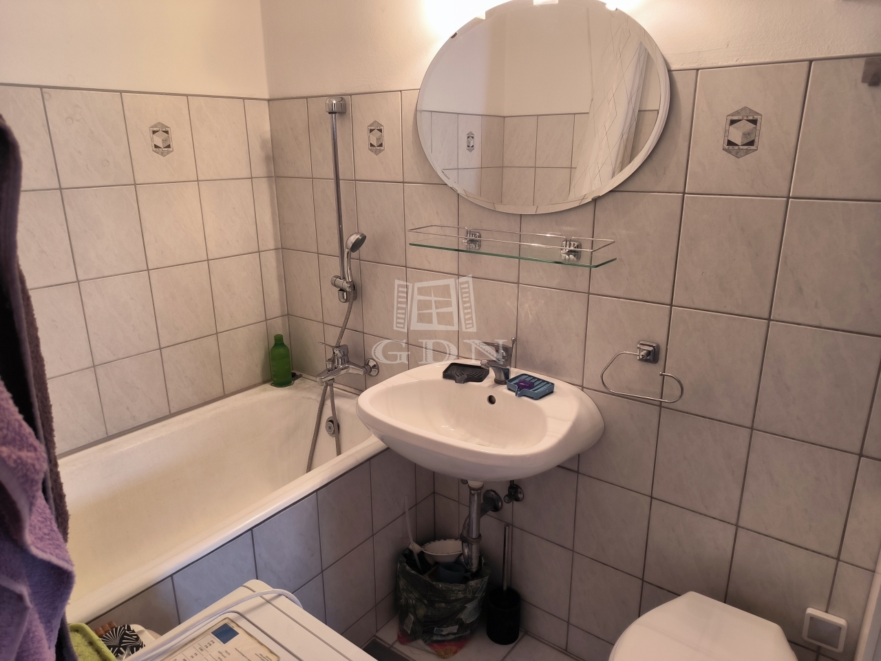 A fürdőszoba kádas és mosógép is elhelyezhető benne.
