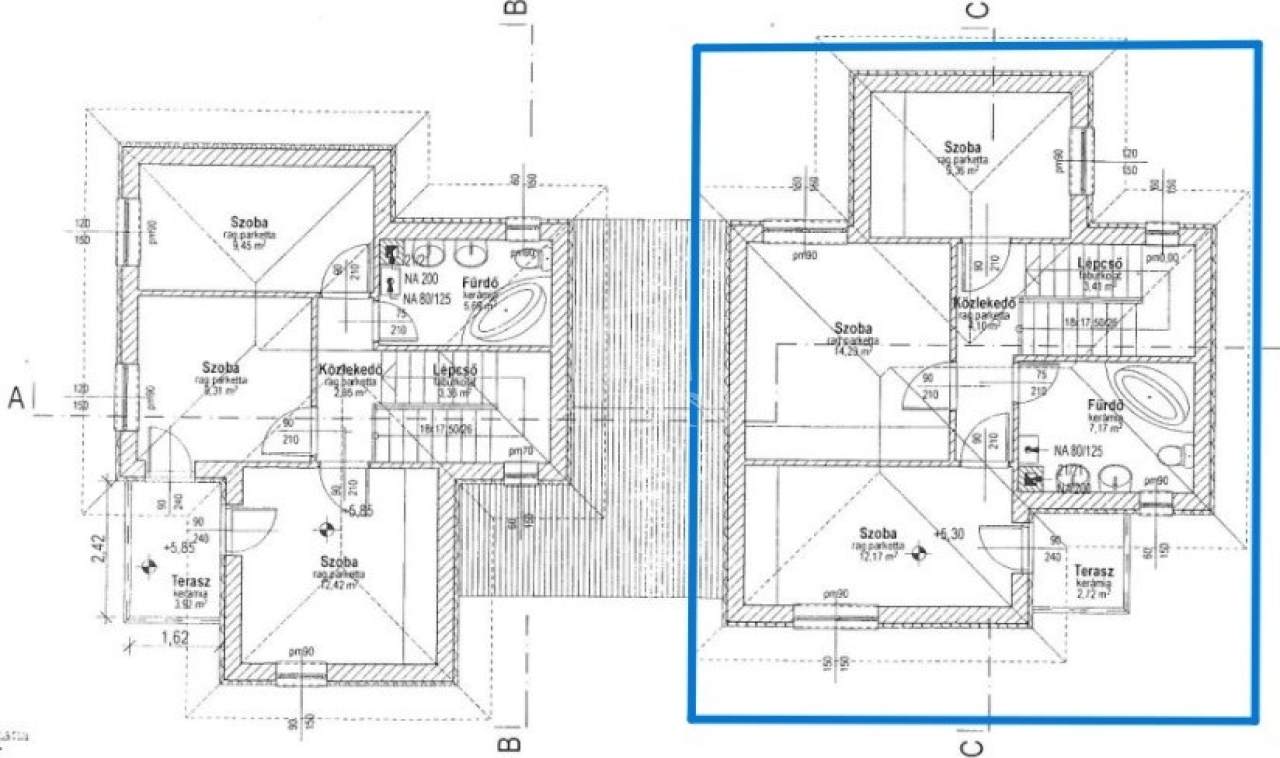 Az ingatlan 104 négyzetméteres, 5 különálló szobával rendelkezik, ideális választás nagyobb családok számára.