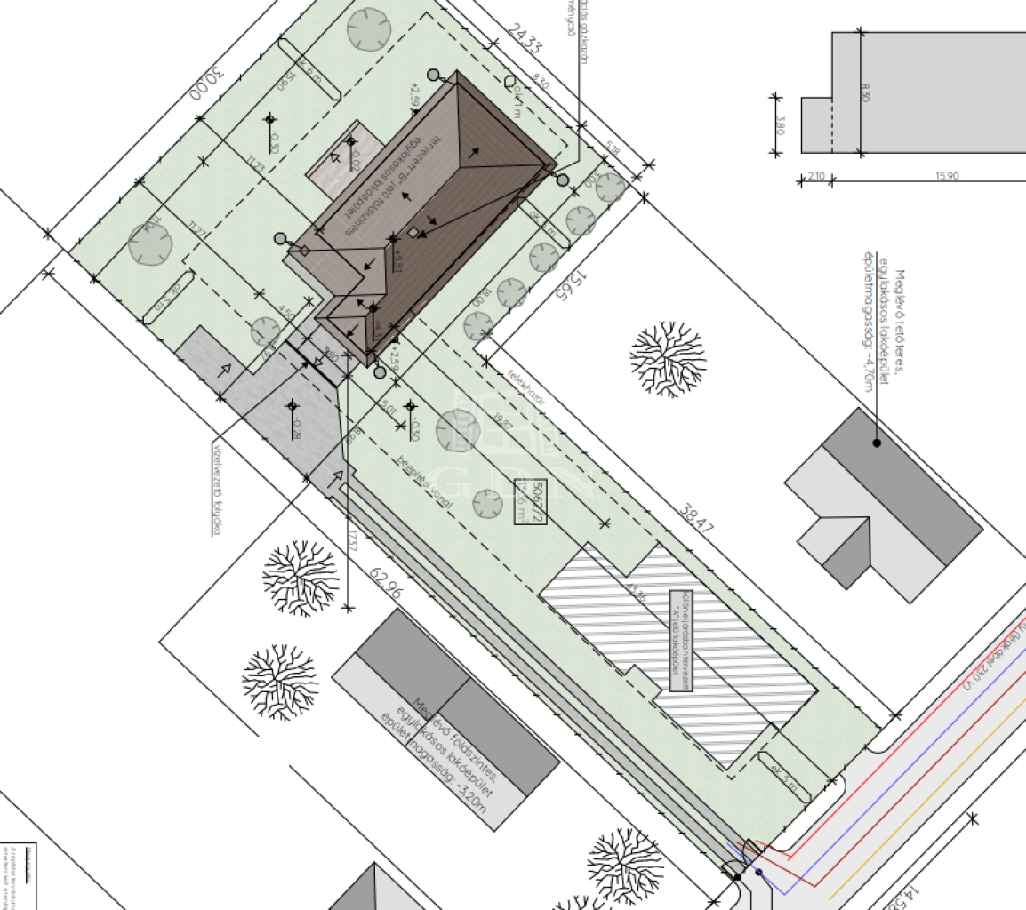 "A" jelű utcafronti ingatlan 469 m2 telken nettó 106,77 m2 lakótérrel kulcsrakészen 130.000.000 ft
