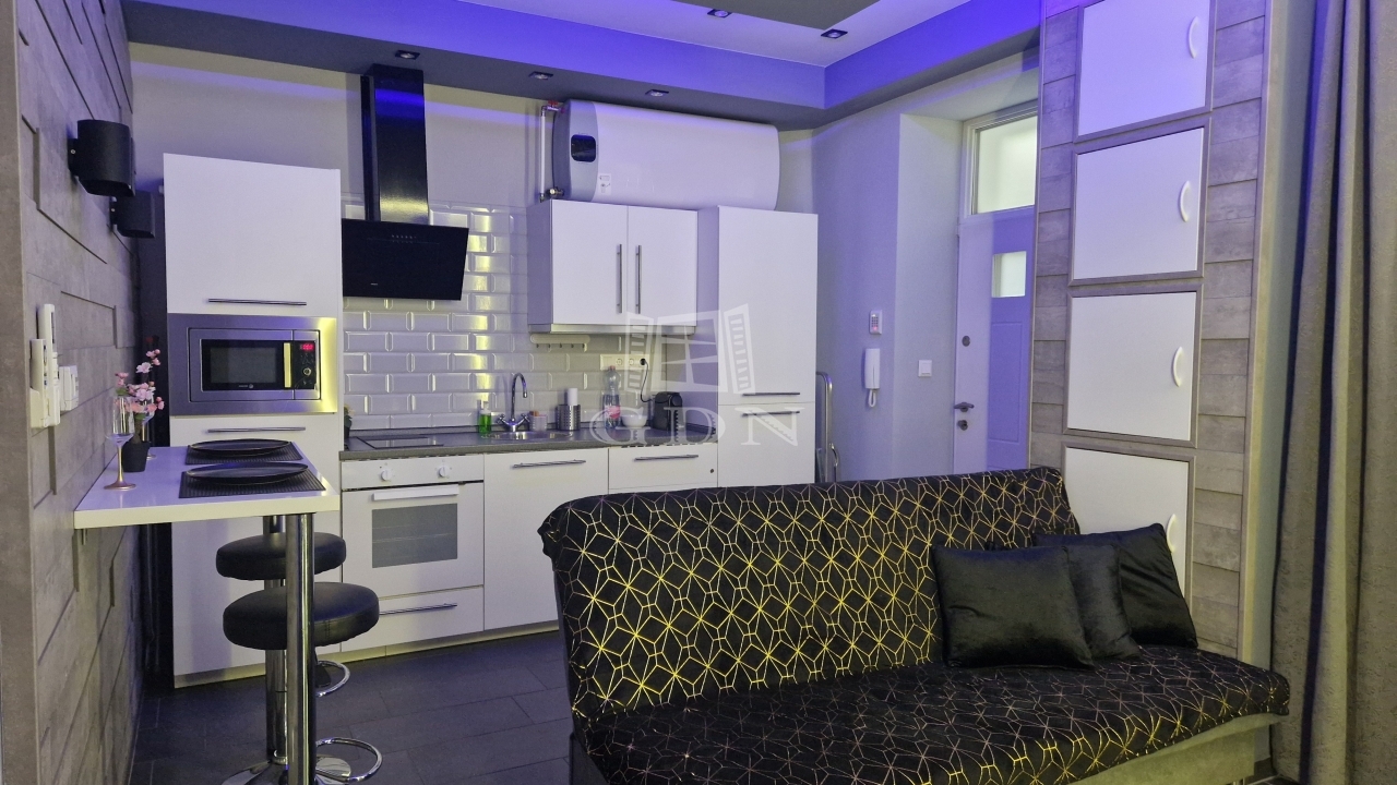 Az Erzsébet körúti appartman amerikai konyhás nappali+háló és modern zuhanyzós fürdőszoba elrendezésű, bútorozott-gépesített, azonnal költözhető.