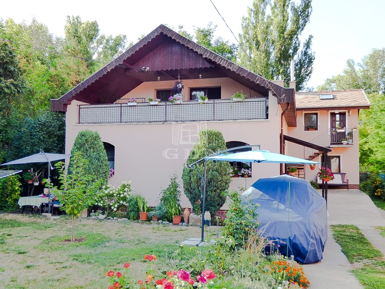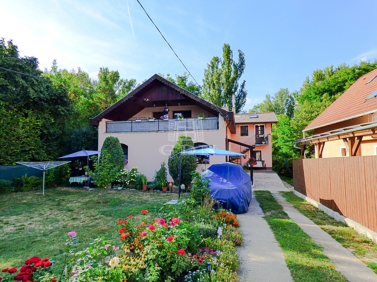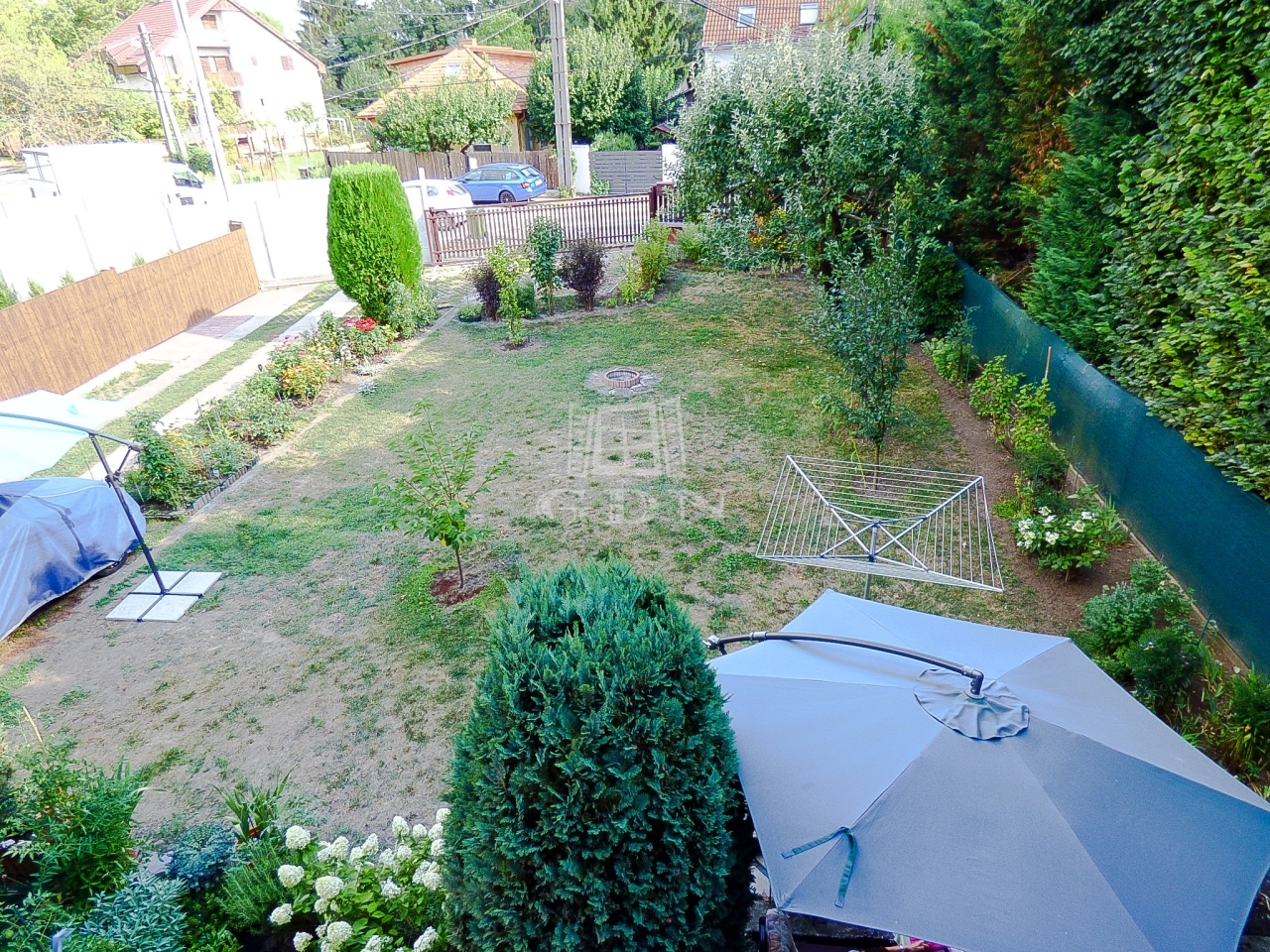 A kert gondozott, rendezett, kiválóan alkalmas kikapcsolódásra.