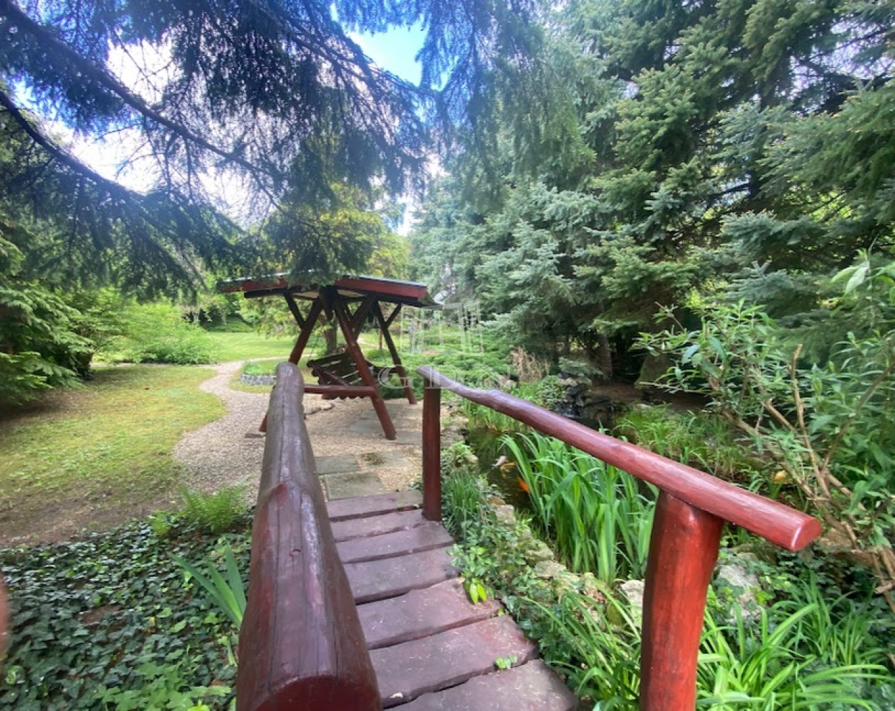 -kerti tárolókkal, sütőhellyel, kerti tóval, medencével rendelkezik