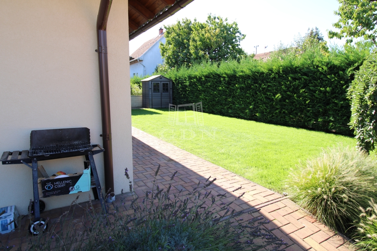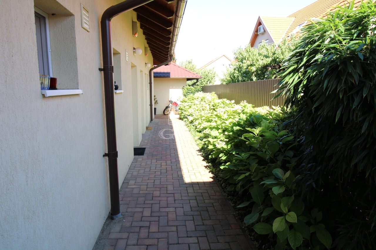 Eladásra kínálok csendes kertvárosi környezetben egy 711nm-es telken, 2020-ban épült, 208nm-es, körbejárható, téglaszerkezetű, szigetelt, klimatizált apartmanházat, saját autóbeállóval, parkosított kerttel, térkövezett saját használatú teraszokkal.