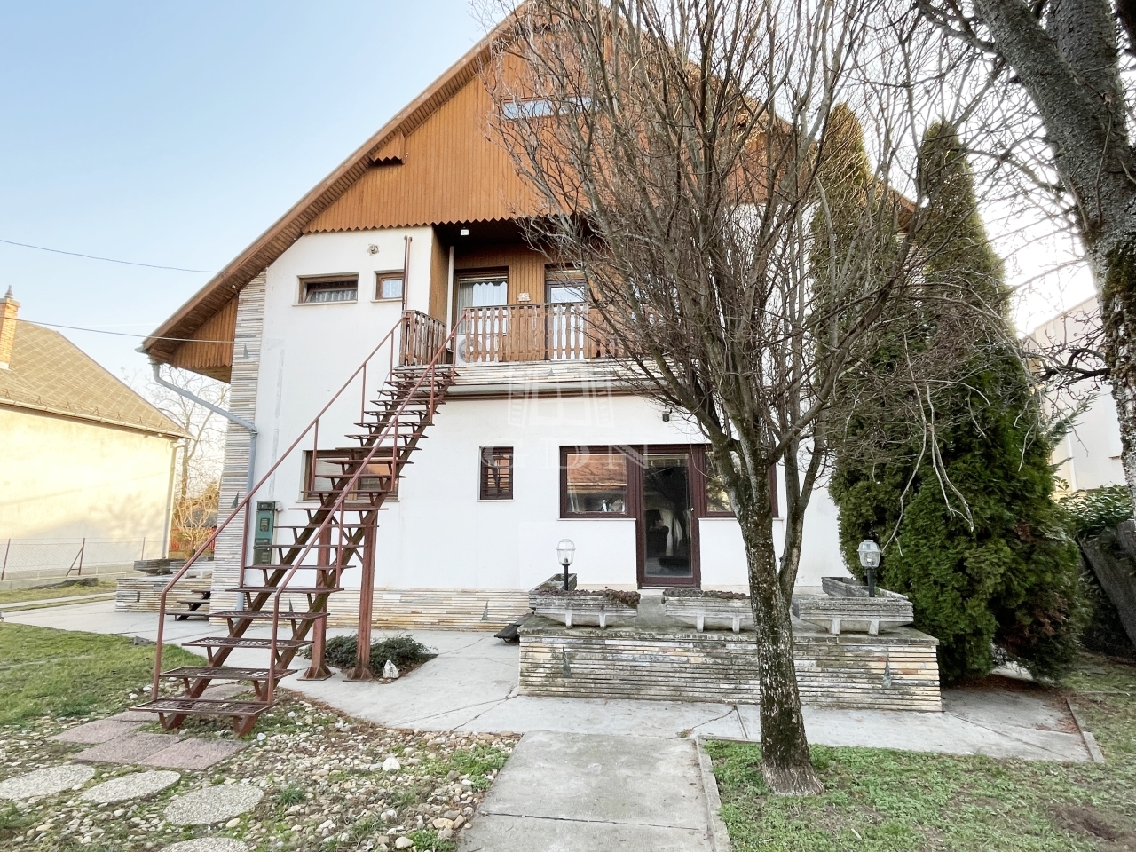 Eladásra kínálunk egy külön bejárattal és külön mérőórákkal rendelkező emeleti lakást, amely egy 987 m²-es, közös használatú, ősfás és gondozott kerttel biztosít kellemes, kertvárosi életérzést.