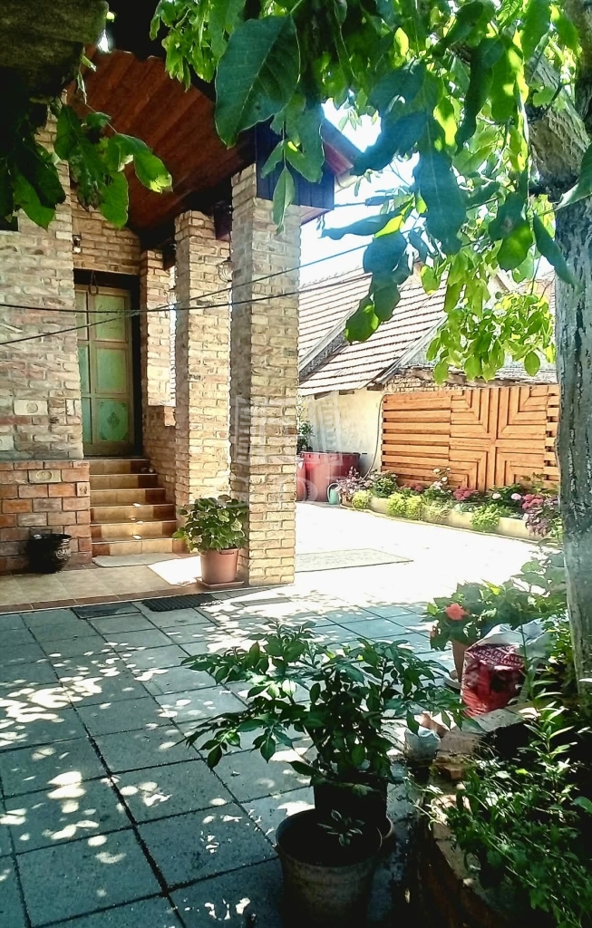 A rendezett, térkövezett udvar több autó számára biztosít parkolási lehetőséget. Melléképületek és kocsibeálló is kialakításra került, a ház előtt elhelyezkedő kertet pedig igényes évelő növények teszik igazán hangulatossá.