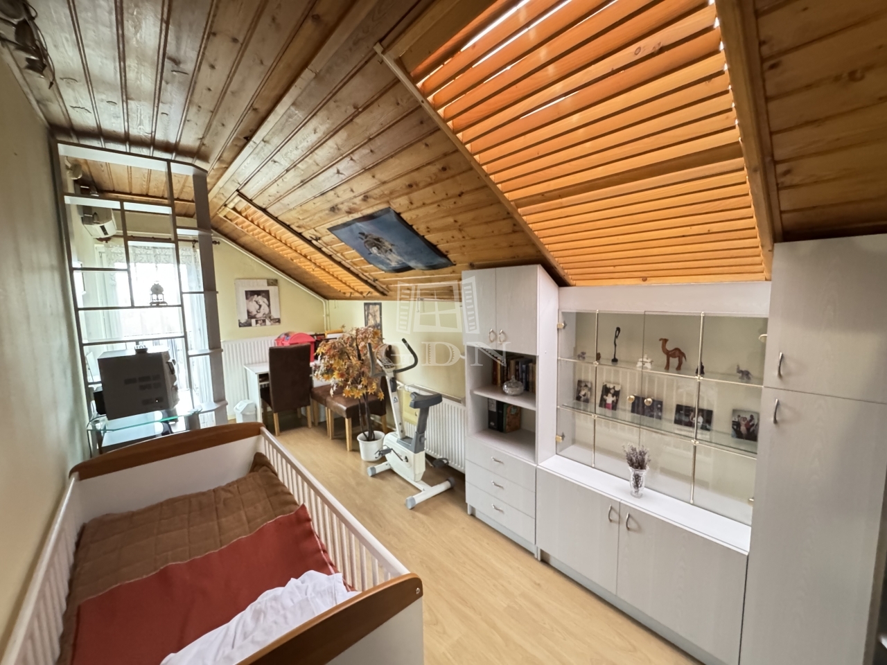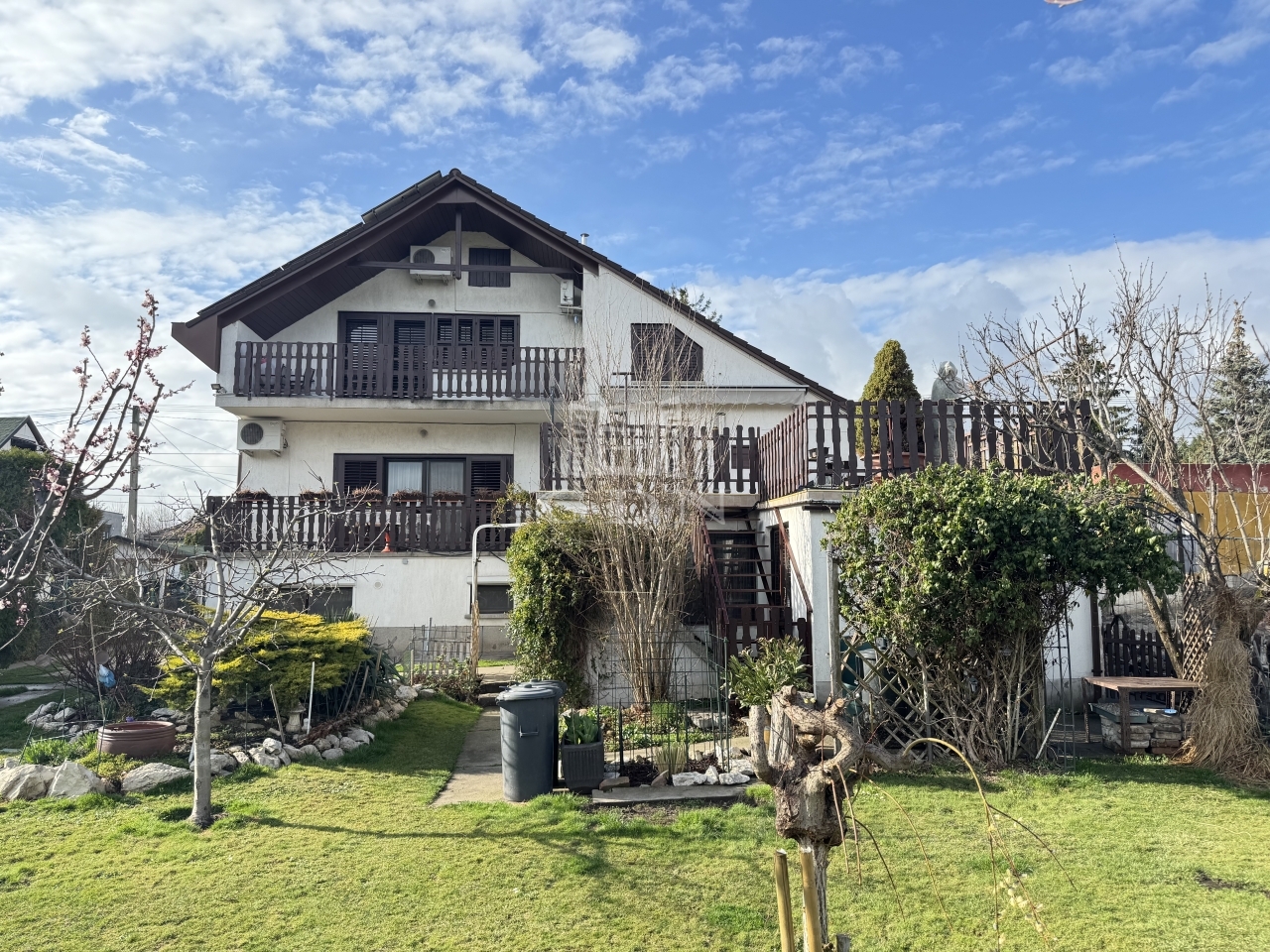 Az ingatlan elosztása: pinceszint (félszuterén) + magasföldszint + félszint + tetőtér, így a TELJES ALAPTERÜLETE a háznak összesen 245 m² + teraszok és erkélyek.