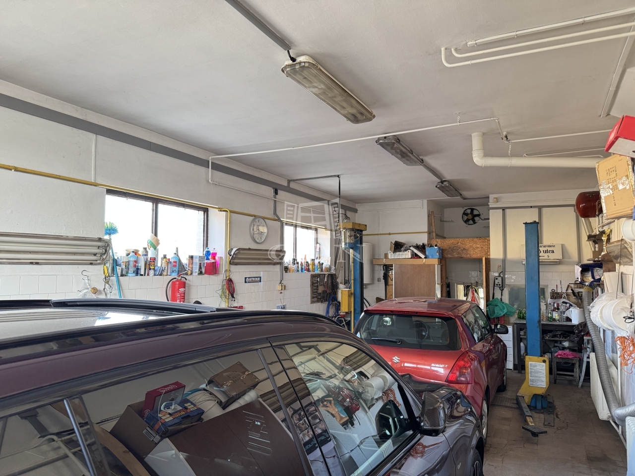A szerelőműhely berendezése igény szerint maradhat (csápos emelő, stb.).