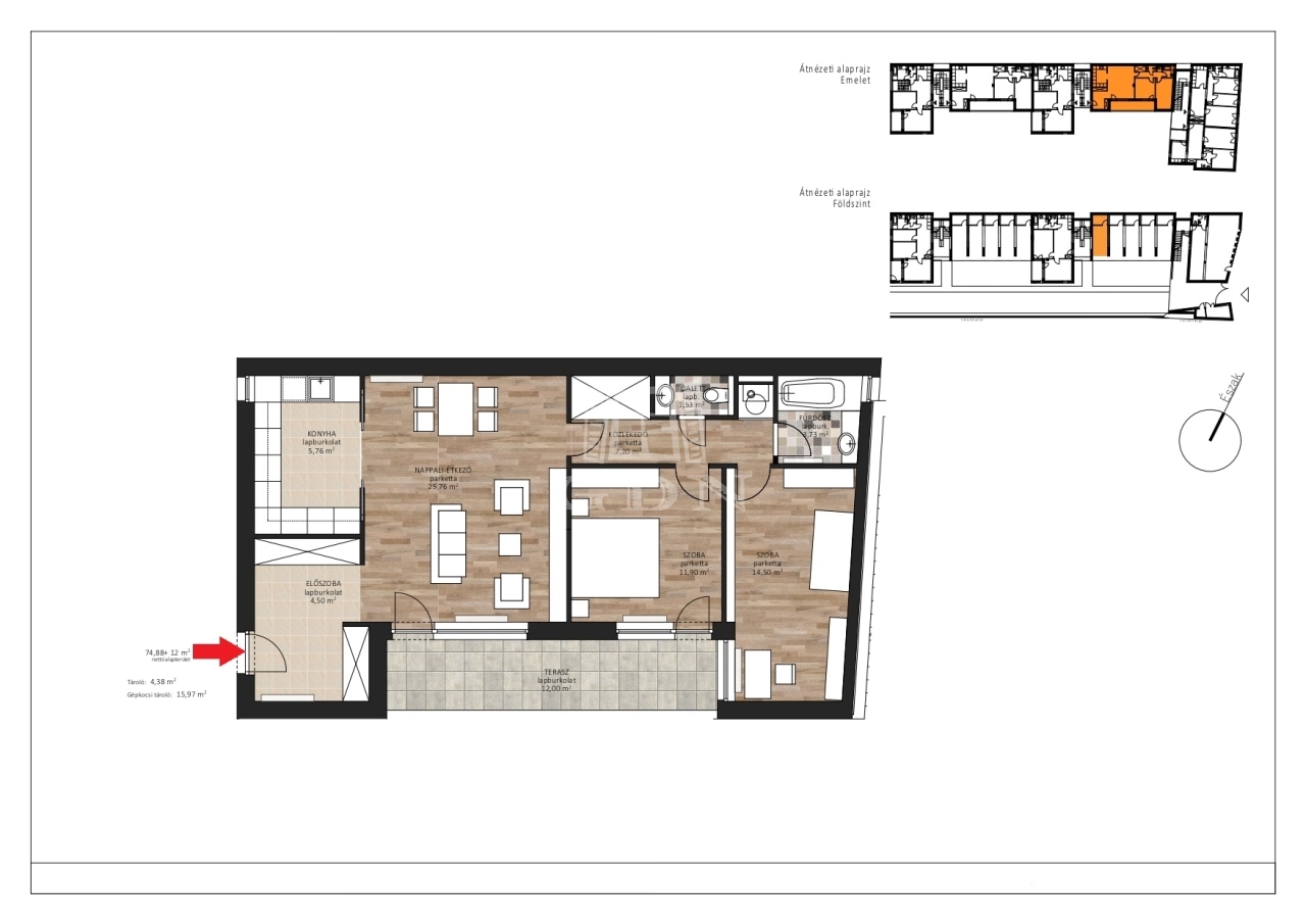 75 m2Alapterület 1 + 2 Szoba