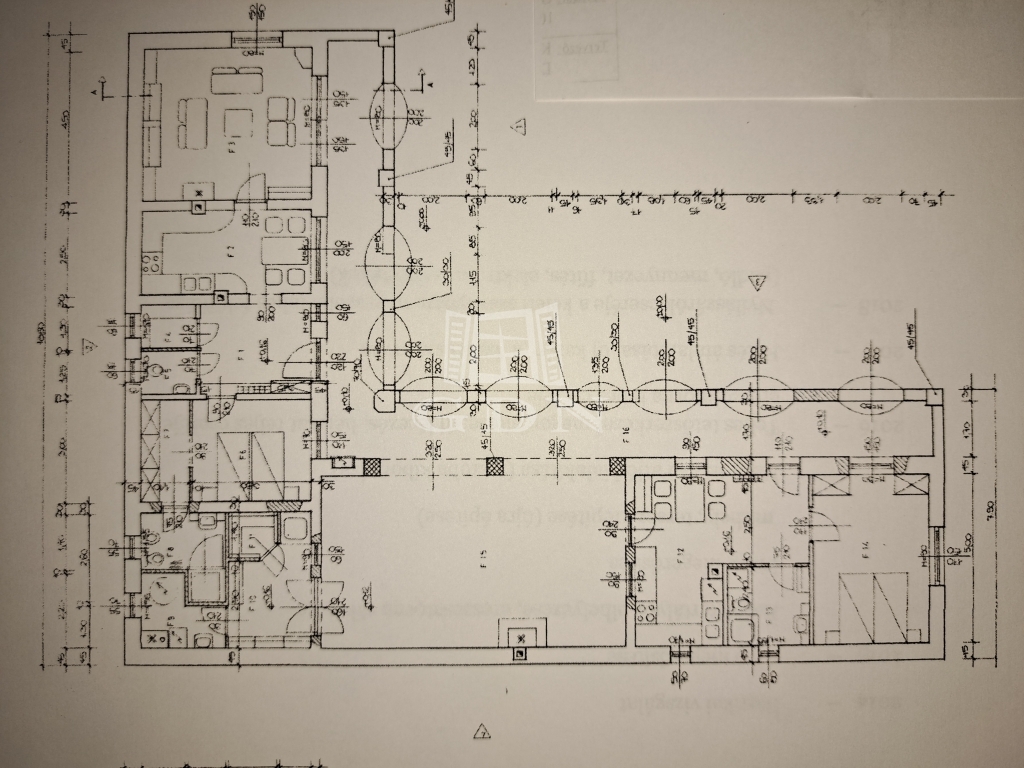 Felosztása 4 lakószoba, 2 fürdőszoba, 2 konyha, előtér, pátió, gang.