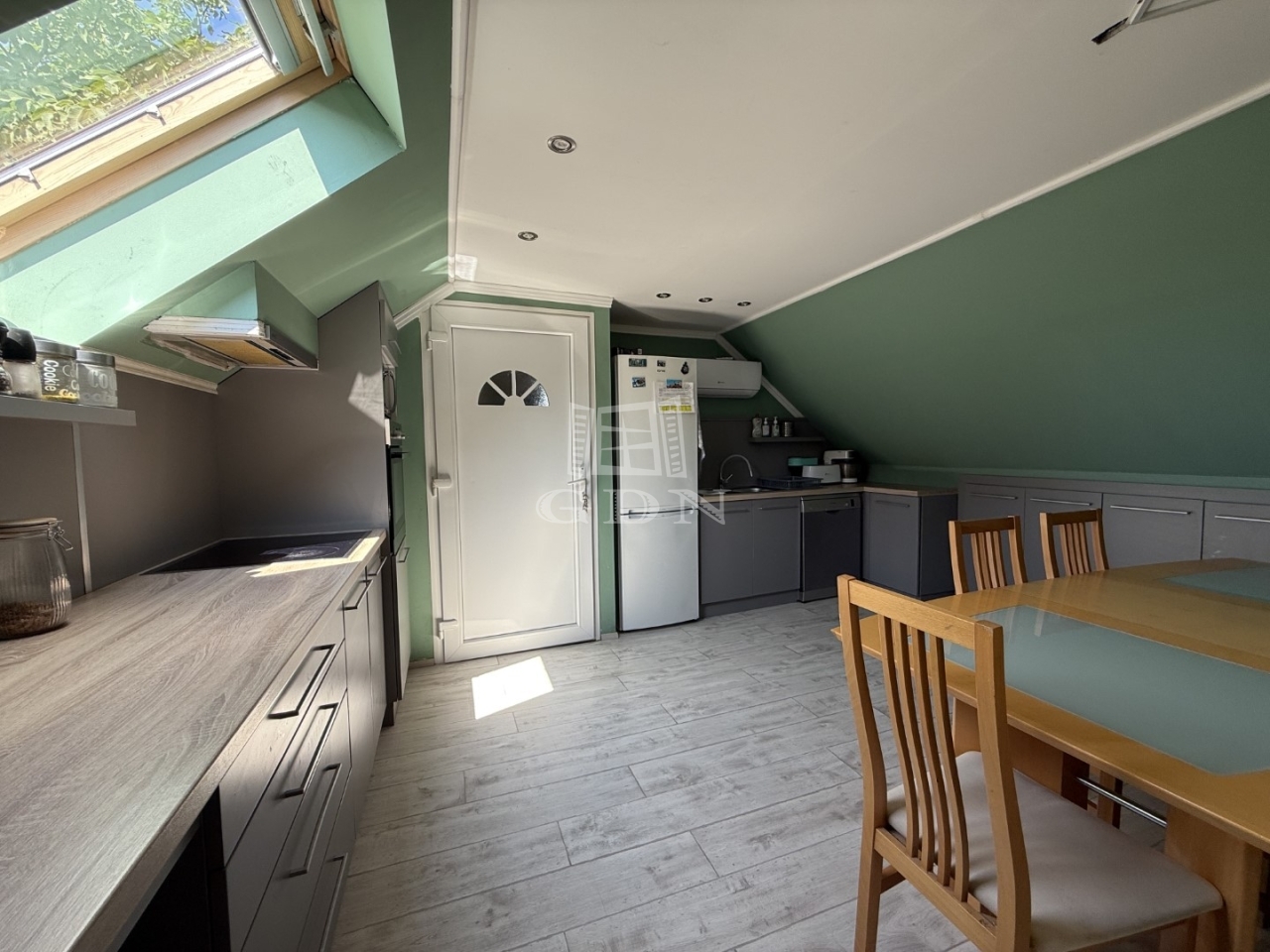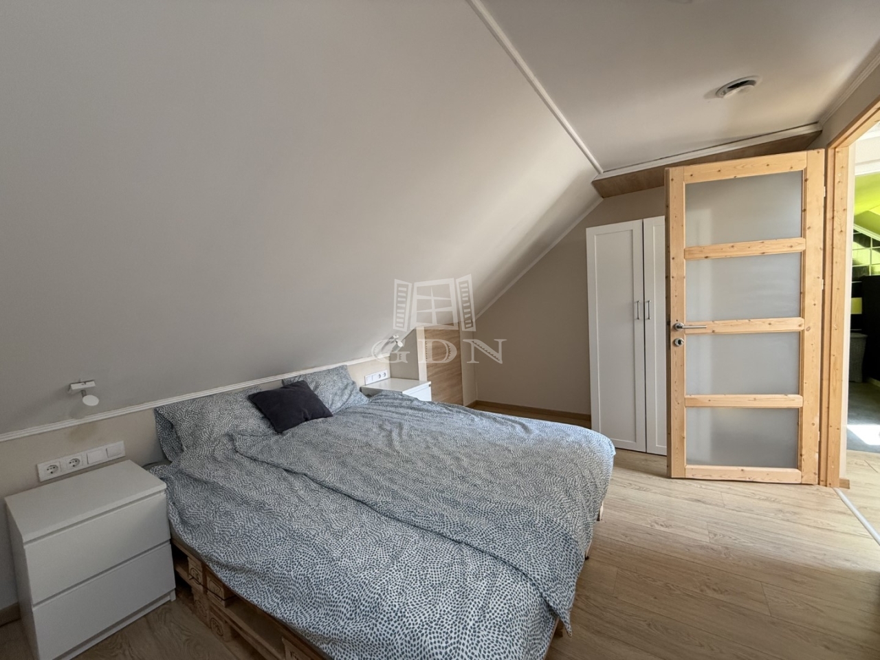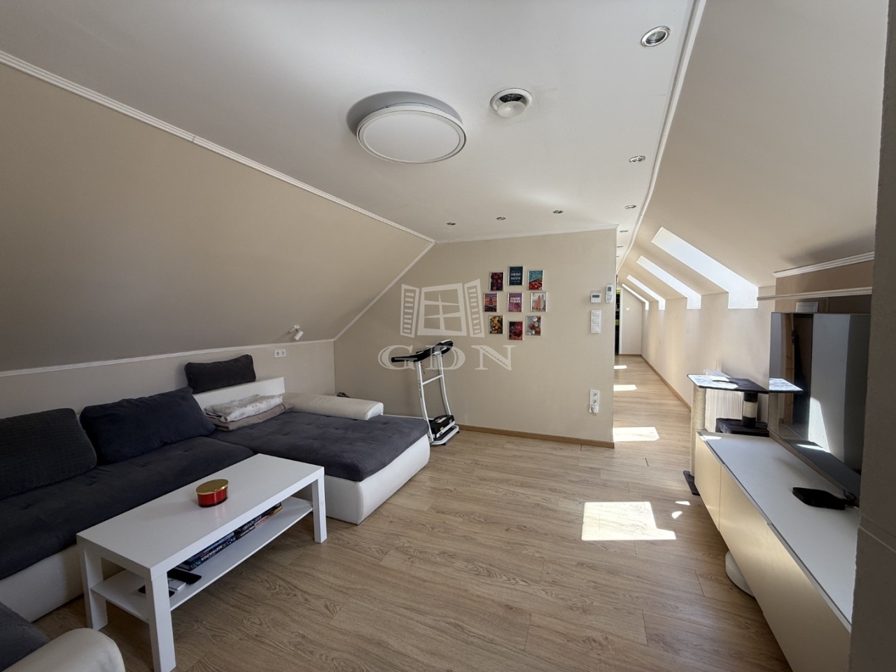• Tetőtéri lakás (54 m²): modern, fiatalos stílusban kialakított, előtér, konyha-étkező, nappali, két hálószoba, fürdőszoba WC-vel. Klimatizált, inverteres (7 kW és 3,5 kW) hűtő-fűtő klímákkal felszerelve.