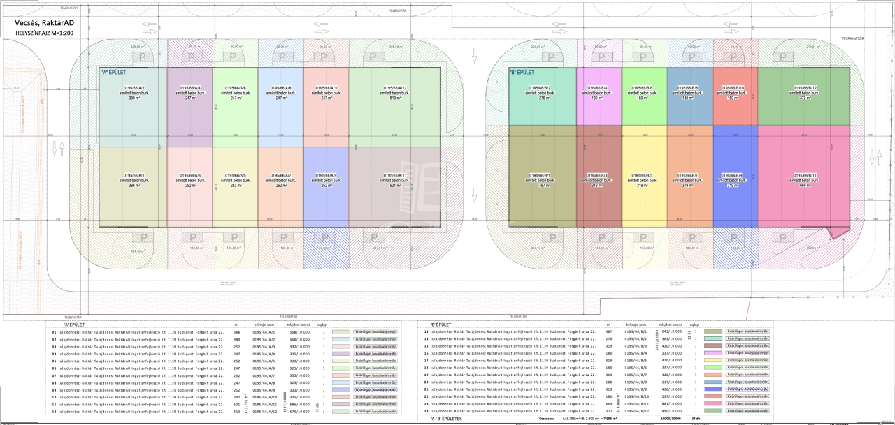 • Ipari társasházi konstrukció, minden vásárló 1/1 arányú kizárólagos tulajdon hányadot, vagyis önálló társasházi albetétet vásárol.